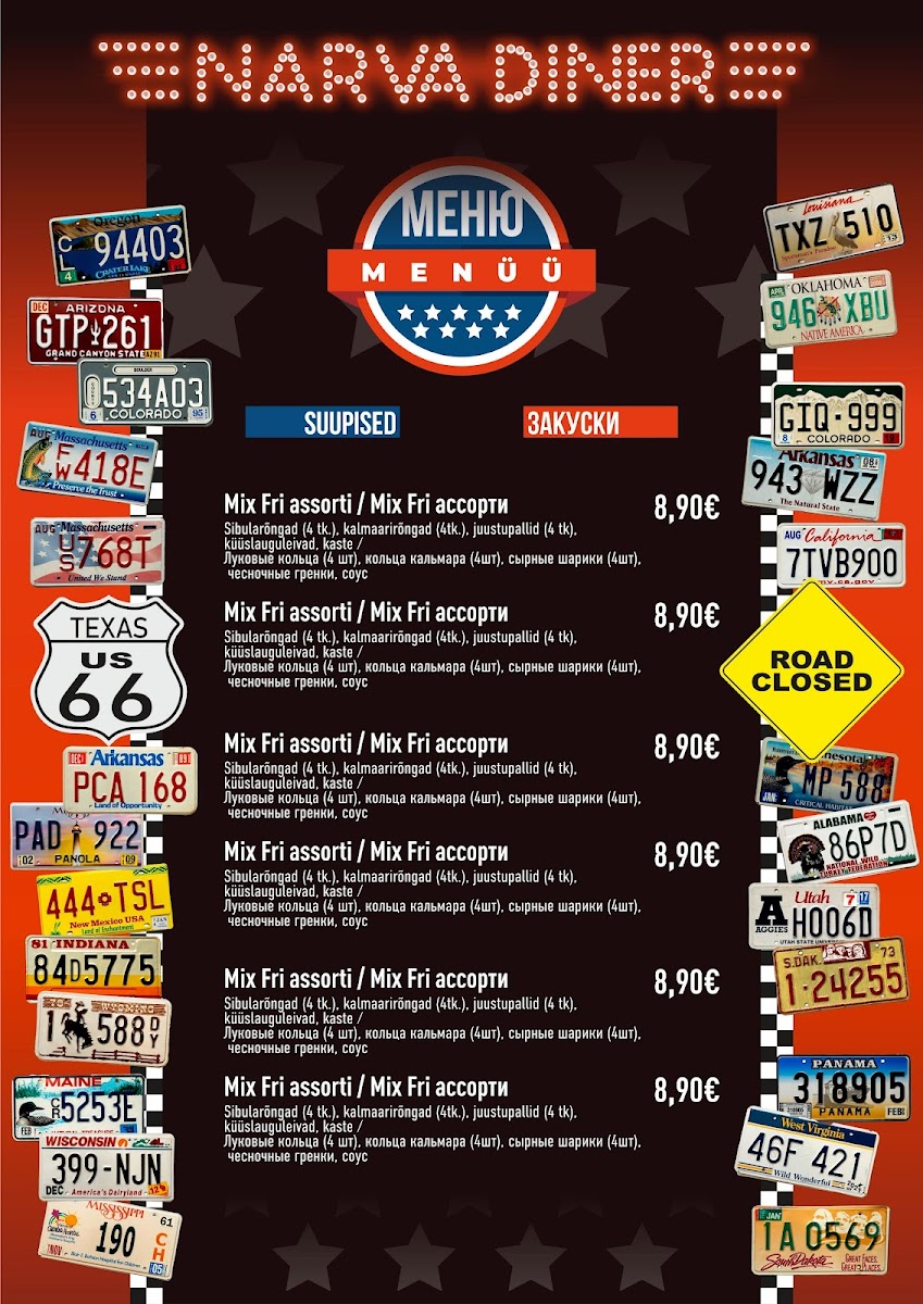 Narva Diner offers a delightful variety of comfort food, making it a perfect spot for casual dining. The menu features some truly standout options that will appeal to both hearty appetites and those seeking something a bit more indulgent. Among the most popular choices is the Cheeseburger Double Trouble, a must-try for burger lovers, offering a double layer of juicy beef patties, melted cheese, and all the classic toppings. For something a little sweeter, the Bubble Waffle provides a fun, crispy treat that’s as delicious as it is visually appealing. The classic Hamburger also remains a go-to option for its simplicity and satisfying taste. For those looking to unwind with a drink, the Strawberry Margarita is a refreshing, fruity cocktail that pairs perfectly with any dish. Finally, don’t miss out on the Вкусный Чизкейк-a flavorful cheesecake that offers a rich and creamy finish to your meal. Whether you're in the mood for a savory bite or a sweet indulgence, Narva Diner's menu has something to satisfy every craving.